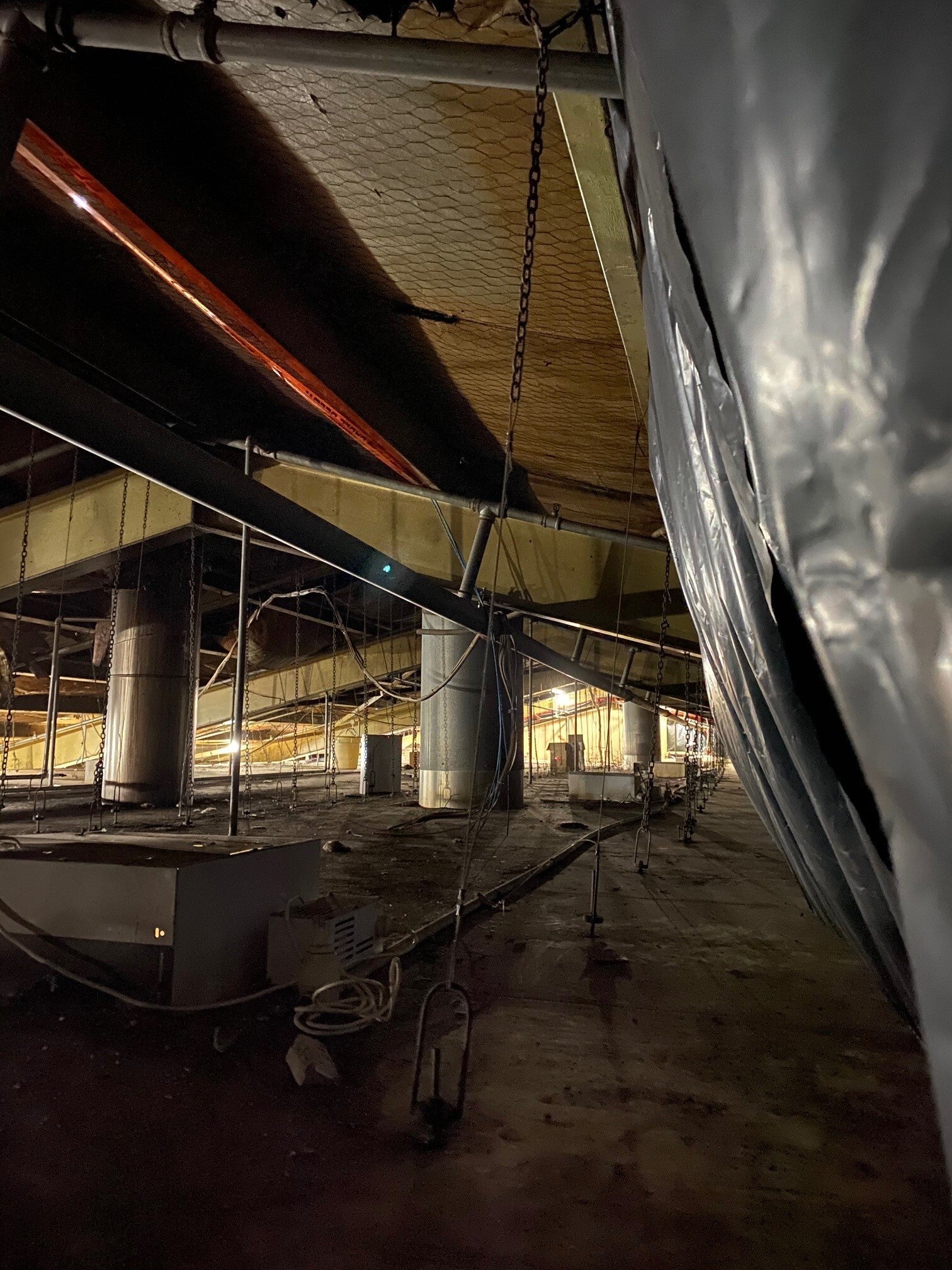Yakka’s approach involved meticulous planning and execution. We installed a birdcage platform directly below the ceiling, above the manufacturing plant. This platform was meticulously wrapped and tested to maintain an airtight, A-class negative pressure environment throughout the asbestos removal. The platform was extended to accommodate the decontamination unit and negative pressure units. We cleaned the ceiling voids of A-class asbestos in stages, followed by the removal and replacement of the asbestos roofing. As these processes were completed in each stage, the polypanel ceilings were removed and replaced with fire-retardant polypanels. Upon completion, the birdcage was safely removed, leaving behind a fully operational and upgraded facility.
